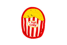 Juguete de peluche con diseño de caja de palomitas, suave y con chirriador para mayor diversión. Ideal para juegos interactivos.